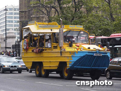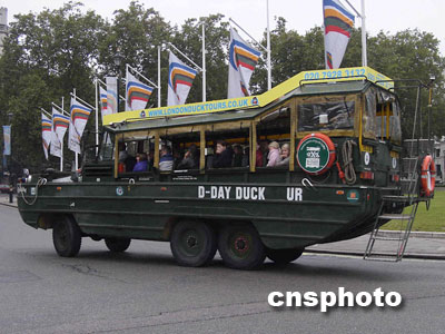 倫敦街頭造型模仿諾曼底戰(zhàn)役盟軍登陸艦的觀光大巴。余瑞冬 攝