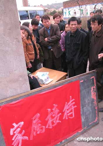 十月二十一日,大平煤礦門口。作者:慎重 遇難家屬在門口登記。作者:慎重