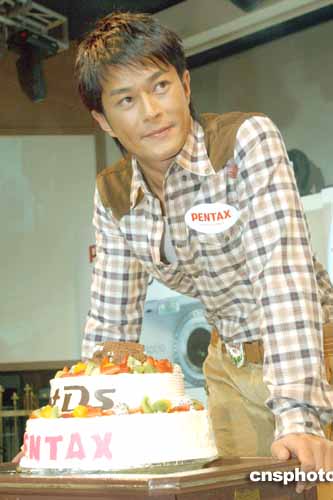 古天樂為賓得數(shù)碼相機(jī)代言人,是日適逢古天樂生辰,大會(huì)送上生日蛋糕為他祝賀。作者:鄧慶樂