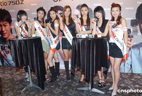 七位賓得數(shù)碼女郎向媒體展示七款嶄新型號(hào)的數(shù)碼相機(jī)。作者:鄧慶樂