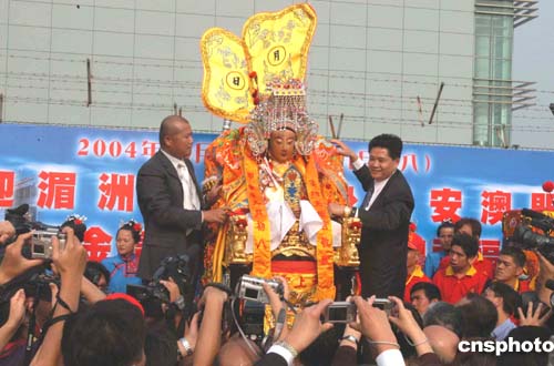 隨著媽祖金身的到來(lái),以“媽祖金身巡安澳門(mén)盛典祈!睘橹黝}的第二屆澳門(mén)媽祖文化旅游節(jié)也揭開(kāi)了序幕。文化節(jié)開(kāi)幕式將于明天上午舉行,隨后的幾天里,將舉行湄洲媽祖金身大巡游、閩澳旅游聯(lián)合促銷(xiāo)、天津民間藝術(shù)剪紙──媽祖故事展覽、媽祖緣.泉澳情書(shū)畫(huà)創(chuàng)作展、福建美食節(jié)和福建民俗文藝表演等活動(dòng)。