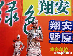 | 廈門(mén)新設(shè)區(qū)——翔安區(qū)二十四日與廈門(mén)日?qǐng)?bào)聯(lián)合舉辦文化活動(dòng)。報(bào)紙DIY時(shí)裝模特登臺(tái)亮相,造型新奇別致,獨(dú)具韻味,引人駐足觀賞。作者:楊伏山
