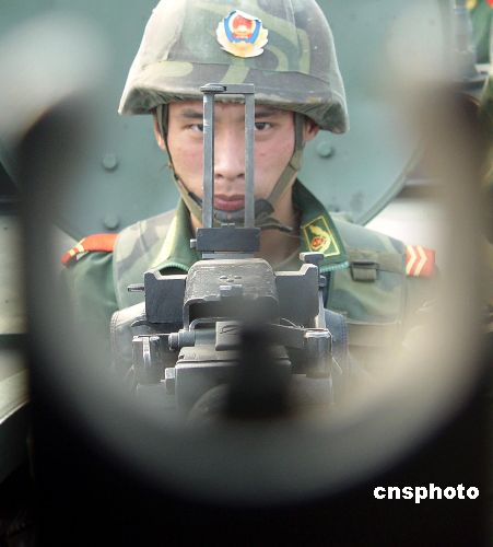 2004年10月25日,江蘇武警某部“反恐”分隊(duì)舉行“反恐”模擬演練,努力提高官兵在各種條件下處置突發(fā)事件能力。作者:王耀武