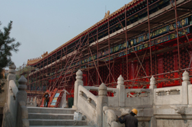 晉宏逵:對(duì)于1400名施工人員,一是對(duì)這些工人尤其是工長(zhǎng)及他們的負(fù)責(zé)人,在進(jìn)入故宮之前都進(jìn)行培訓(xùn),我們叫做持證上崗。二是能夠進(jìn)入故宮的單位都是經(jīng)過(guò)招標(biāo)的,它們都擁有國(guó)家文物局頒發(fā)的一級(jí)文物建筑維修施工和設(shè)計(jì)證書。三是故宮和施工單位一起制定了一整套現(xiàn)場(chǎng)管理措施,包括人員、技術(shù)、材料進(jìn)出廠的管理等。通過(guò)這些管理手段來(lái)保證故宮維修的安全。四是施工單位都是利用傳統(tǒng)方法來(lái)進(jìn)行施工的,能夠保證維修工作不改變建筑原狀。另外從技術(shù)措施上,我們也想了很多辦法。比如說(shuō)對(duì)比較重要的墻,他們對(duì)每一塊磚都做了編號(hào)。在這些建筑隊(duì)伍進(jìn)場(chǎng)之前,我們已經(jīng)也做了充分的考慮,不僅僅要保證建筑的安全,還要保證游客的安全,因?yàn)槲覀兊木S修是在不關(guān)閉多個(gè)館的情況下進(jìn)行的,我們劃定了比較嚴(yán)格的區(qū)域進(jìn)行管理。施工工人只在上班時(shí)進(jìn)入故宮,不能在故宮居住。