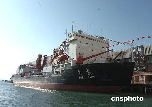 中國第21次南極考察隊暨“雪龍?zhí)枴逼票谇巴蠘O途中29日抵達香港﹐停泊在尖沙咀海運大廈客運碼頭﹐并于明后兩天供市民參觀。中新社記者:趙振清