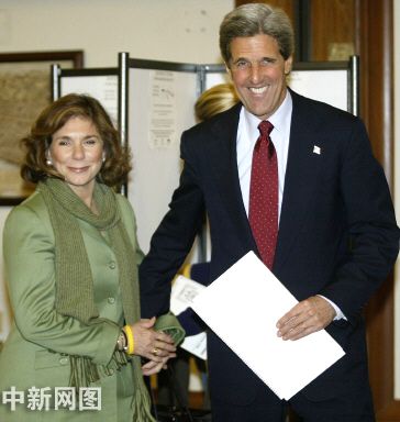 11月2日,美國(guó)民主黨總統(tǒng)候選人克里在其家鄉(xiāng)波士頓投票。