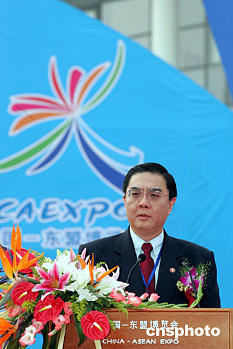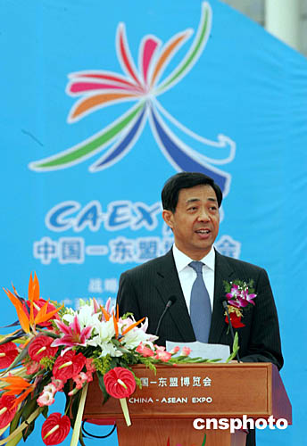 圖為中國(guó)商務(wù)部長(zhǎng)薄熙來(lái)在中國(guó)-東盟博覽會(huì)開幕式上致辭。