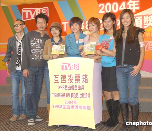 《2004年TVB8金曲榜頒獎(jiǎng)典禮》11月3日在香港舉行記者會(huì),出席活動(dòng)的女歌星參與互選投票。作者:鄧慶樂