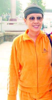 2004年11月3日,發(fā)嫂為老公來廣州打官司,一身寬松的運(yùn)動(dòng)裝,已遮掩不住明顯隆起、據(jù)說是練氣功而出現(xiàn)的肚子。(記者葉毅)