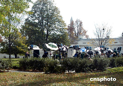 熬了通宵等待大選結(jié)果的白宮記者剛剛躺下休息,民主黨候選人克里11月3日中午突然主動認(rèn)輸,讓這些記者再度忙碌起來,在白宮大院內(nèi)等待布什政府的反應(yīng)。作者:余東暉