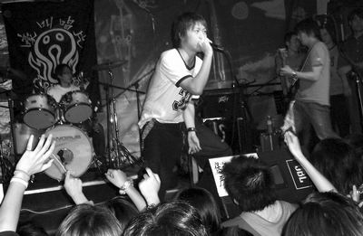 因?yàn)殡妷翰环(wěn)燒掉了設(shè)備,五月天在新豪運(yùn)酒吧的萬圣節(jié)演出夜(10月31日)拖延了很久才上場(chǎng),這讓下面的歌迷頗有些不耐煩。但他們最終還是成功地調(diào)動(dòng)了大家的情緒,甚至一位歌迷還試圖跳上舞臺(tái)湊熱鬧———當(dāng)然最后他還是被酒吧的保安拖了下去。演出結(jié)束的時(shí)候已經(jīng)是凌晨近2點(diǎn),8小時(shí)之后,五個(gè)明顯沒有睡醒的樂隊(duì)成員接受了我的采訪。