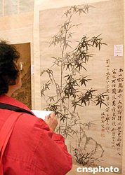 清代鄭燮(號板橋)名作《竹石蘭蕙圖》十一月七日在北京舉行的嘉德秋季拍賣會(huì)上,以五百三十九萬元人民幣的高價(jià)被成功拍賣。當(dāng)天舉行的嘉德中國古代書畫專場拍賣會(huì)總成交額突破一億元人民幣。圖為拍賣預(yù)展時(shí)觀眾欣賞《竹石蘭蕙圖》。中新社記者:張煒