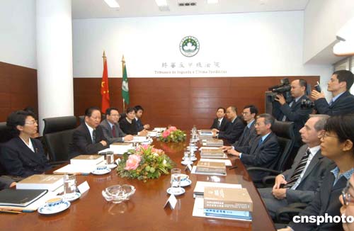 中新網(wǎng)11月15日電 據(jù)央視國際網(wǎng)站消息,由最高人民法院院長肖揚(yáng)率領(lǐng)的最高人民法院代表團(tuán)今天在澳門與澳門特別行政區(qū)終審法院院長岑浩輝進(jìn)行座談,詳細(xì)了解澳門回歸5年來,在“一國兩制”框架下的法律和司法制度等問題。