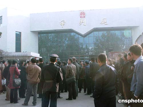 被告人被押解進(jìn)入法庭。作者:史寶銀 法庭外聚集大批群眾。作者:史寶銀