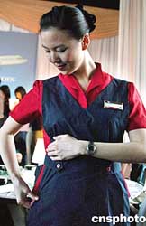 國泰航空18日在半島酒店展示即將更新的員工服裝。國泰航空的機艙服務員及香港地勤人員將于明年三月?lián)Q上即日展示的新裝。作者:宋吉河