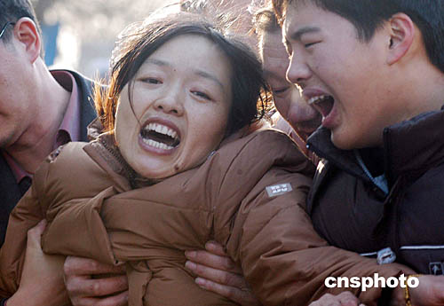 圖:遇難者家屬在空難現(xiàn)場悲痛欲絕