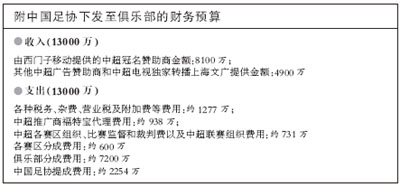 在收入部分,足協(xié)此前準備的預算方案總共有三個項目:由西門子移動提供的中超冠名贊助商金額8100萬;其他中超廣告贊助商和供應贊助商提供金額4291萬;中超電視獨家轉播上海文廣轉播金額2100萬。但在昨天傳給各俱樂部的預算中:后兩項預算合并為了一項,數(shù)目減少了1500萬元。