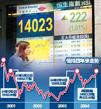 相關(guān)報(bào)道:港股升破一萬四千點(diǎn) 資金持續(xù)流入料升浪可續(xù) (2004-11-24 08:34:18)