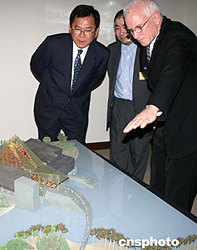 臺北“故宮博物院”將投入數(shù)十億元新臺幣在嘉義縣建分院。在公開競逐中,來自美國的著名建筑師Antoine Predock最終勝出。圖為十一月二十四日,Antoine Predock(右)介紹他所設(shè)計(jì)的“故宮分院”。中新社記者:董會峰