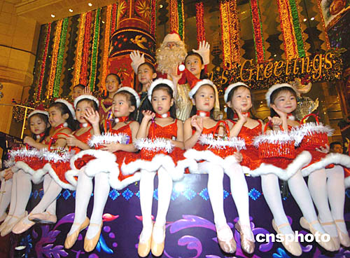 香港時(shí)代廣場(chǎng)2004圣誕月24日晚拉開序幕﹐今年的圣誕節(jié)裝飾以《閃爍時(shí)代夢(mèng)幻曲》為主題。中新社記者:趙振清