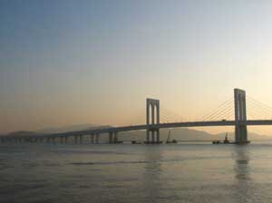 澳門特區(qū)政府于二○○二年八月初決定把設計及建造第三大橋的承攬工程判給由國家著名建橋企業(yè)組成的“中鐵———大橋聯(lián)合體”,造價為五億六千多萬元,大橋的設計及建造要求在28個月內(nèi)完成。由于工程進展順利,大橋提前兩個月竣工。