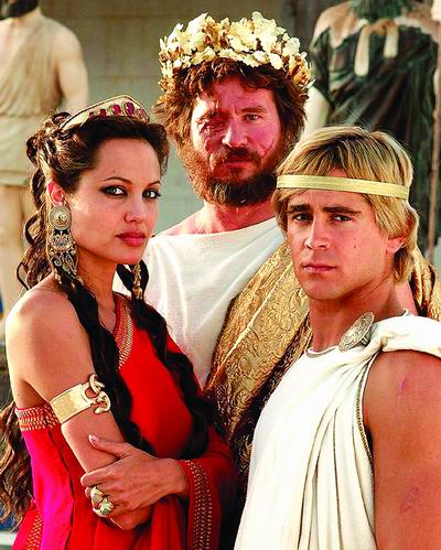 再次,影片首映以來的口碑之差令人驚異,幾乎可與我國媒體“群毆”《十面埋伏》相提并論。大量惡評主要集中于影片對亞歷山大的雙性戀展現(xiàn)、亂倫情節(jié)和故事鋪陳、人物塑造上的空洞無物。有人稱影片“如果放在亞歷山大的時代,眾神都會降下憤怒的閃電”。像《綜藝》這樣的權(quán)威媒體還算“厚道”的,只是說它“最多算一次光榮失敗,聰明、野心勃勃,但嚴(yán)重缺乏敘事才能和感情帶入”。希臘律師團(tuán)控告奧利佛·斯通歪曲亞歷山大性取向的官司更是讓事態(tài)亂上加亂。