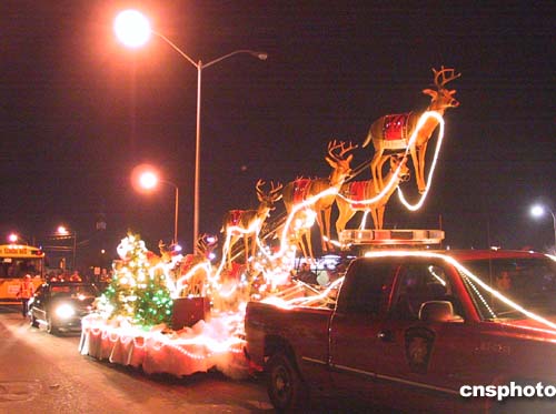 當(dāng)?shù)貢r間十一月二十七日晚,加拿大一年一度的“圣誕燈光大游行”在首都渥太華市舉行。數(shù)萬民眾冒著凜烈的寒風(fēng)沿街觀看,近百輛彩燈裝飾的彩車行進(jìn)在“圣誕快樂!”的歡呼聲中。作者:蒲力