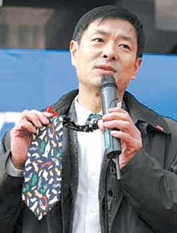 演講行將結(jié)束時,復旦學子對濮存昕的安全套領帶興趣漸漸濃厚起來,主持人代表復旦大學紅十字會向他“索要”那條安全套領帶,不過由于這條領帶是他從泰國帶回來的珍藏品,不便贈人,濮存昕只得改送一只印有他本人卡通形象的安全套。