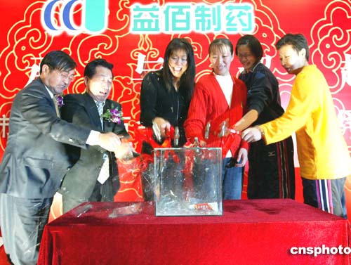 | 由貴州益佰制藥主辦的“傳承與超越”·鐵榔頭正紅花油膜貼產(chǎn)品上市新聞發(fā)布會十一月三十日在北京舉行,該產(chǎn)品形象代言人郎平與現(xiàn)中國女排隊長馮坤、趙蕊蕊、教練賴亞文以及貴州益佰制藥董事長葉湘武等高舉象征著“鐵榔頭精神”的錘子進行破冰儀式,新產(chǎn)品應(yīng)聲而出。作者:李剛