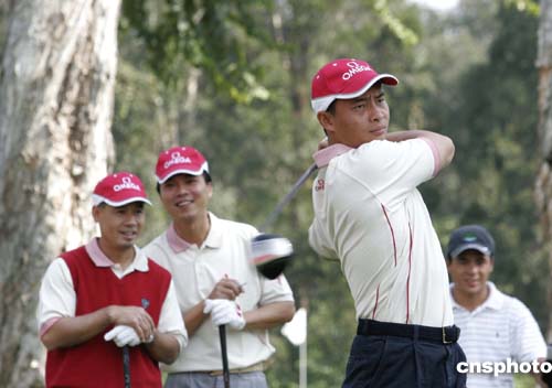 國(guó)際名牌手表品牌歐米茄將于12月2至5日在香港粉嶺高爾夫球會(huì)舉行「歐米茄職業(yè)業(yè)余賽」, 身為歐米茄大使的中國(guó)首席球手張連偉,聯(lián)同中國(guó)運(yùn)動(dòng)員教育基金發(fā)起人之一的李寧、李小雙及江嘉良參與比賽。圖為李小雙球場(chǎng)揮桿練習(xí)。作者:洪少葵