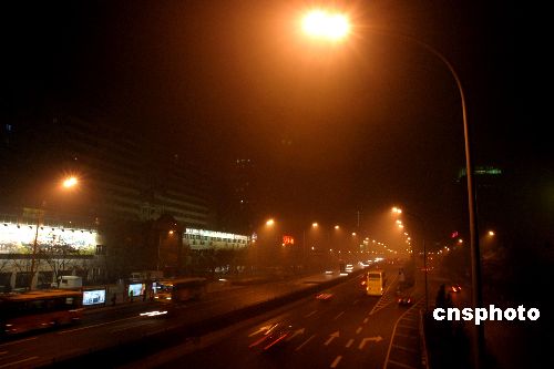 中新社北京十二月二日電(記者周音)自十二月一日至今晨的濃霧侵襲著中國(guó)大部分地區(qū),致使中國(guó)許多地區(qū)機(jī)場(chǎng)飛機(jī)航班延誤,上萬(wàn)名旅客滯留機(jī)場(chǎng)。高速公路封閉;汽車在濃霧中緩慢前行。
