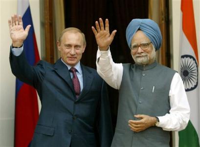 俄羅斯總統(tǒng)普京(左)與印度總理辛格