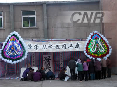 中廣網(wǎng)消息,今天是礦難發(fā)生的第七天,陳家山陽光明媚,但所有陳家山礦難現(xiàn)場的人們心情都十分沉痛。按照當(dāng)?shù)孛耖g的習(xí)慣,是給亡者過“頭七”的日子。為了方便遇難礦工家屬的祭奠,有關(guān)方面專門在陳家山礦浴池前廣場搭建了靈堂。從上午7點開始,遇難礦工家屬就陸續(xù)來到靈堂祭奠,現(xiàn)場一片肅穆。