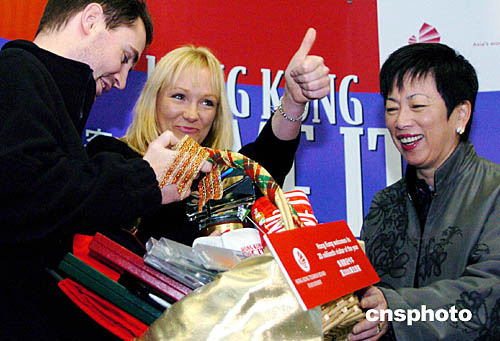 中新社香港十二月五日電(記者關(guān)向東)三十二歲的荷蘭金發(fā)女郎芭芭拉,五日上午九點四十五分從香港國際機場入境,她榮幸地成為今年第兩千萬位抵港旅客。