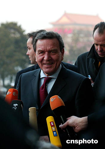圖:中外媒體關(guān)注德國總理施羅德訪華