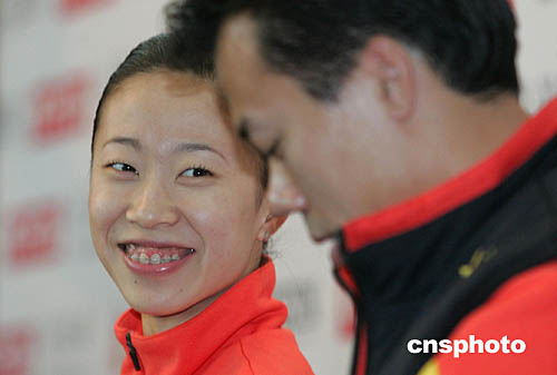 | 二零零四年十二月十六日到十九日,世界花樣滑冰大獎(jiǎng)賽總決賽將在北京首都體育館舉行,來自中國(guó)、美國(guó)、加拿大等八個(gè)國(guó)家的三十六名優(yōu)秀選手將角逐雙人滑、冰舞、男單、女單等四個(gè)項(xiàng)目的金牌。中國(guó)的三對(duì)雙人滑選手申雪/趙宏博、張丹/張昊、龐清/佟健和一名男子單人滑選手李成江進(jìn)入總決賽。由于米尼娜/馬列寧的缺陣,中國(guó)選手申雪/趙宏博目前一支獨(dú)秀,如無意外,雙人滑冠軍應(yīng)是他們的囊中之物。圖為申雪/趙宏博十二月七日在新聞發(fā)布會(huì)上。中新社記者:武仲林