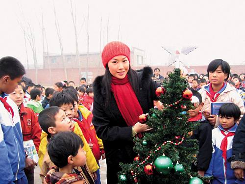 中新網(wǎng)12月8日電 據(jù)香港大公報(bào)報(bào)道,應(yīng)屆港姐冠軍徐子珊,日前應(yīng)中國(guó)香港(地區(qū))商會(huì)之邀,到北京出席慈善晚會(huì),并代表商會(huì)探訪北京偏遠(yuǎn)山區(qū)的小學(xué),與當(dāng)?shù)匦∨笥烟崆坝フQ,除了與小朋友一起布置圣誕樹,又向他們派送禮物。