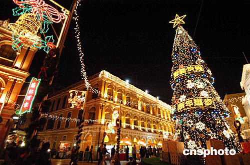 十日,澳門舉行“圣誕及新年節(jié)日亮燈”儀式,是晚全澳的節(jié)日燈飾同時點(diǎn)亮,令澳門洋溢著濃厚的節(jié)日氣氛。作者:梁永強(qiáng)