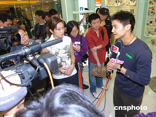 | 中國(guó)跳水金牌選手田亮11日來(lái)到香港時(shí)代廣場(chǎng)8層電子產(chǎn)品專(zhuān)賣(mài)店﹐為該店圣誕節(jié)禮品促銷(xiāo)造勢(shì)。中新社記者:趙振清