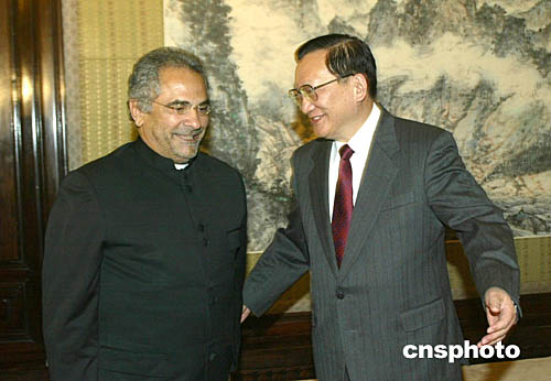 中國國務委員唐家璇十二月十四日在北京中南海會見來訪的東帝汶外交部長奧爾塔。中新社記者:史利