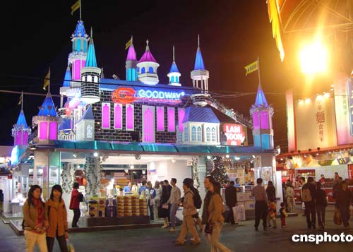 圖為經(jīng)營(yíng)小型家用電器的威馬企業(yè)參展攤位,外型如城堡入夜時(shí)分光芒四射。作者:洪少葵