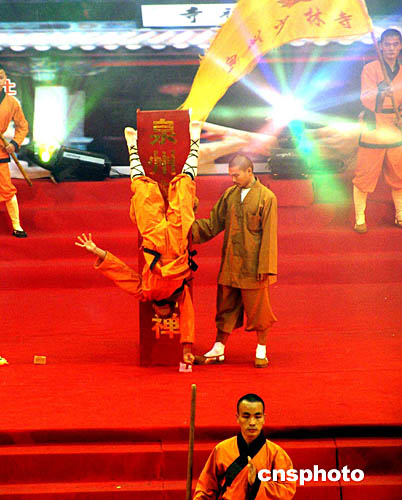 2004年12月19日上午,中國福建(泉州)南少林國際武術(shù)大賽,在泉州僑鄉(xiāng)體育館開幕。開幕式上南北少林同臺(tái)演武,精彩絕倫,其中泉州南少林寺武僧釋理亮表演的“一指禪”絕技更是讓現(xiàn)場(chǎng)嘉賓贊嘆不已。作者:石勇