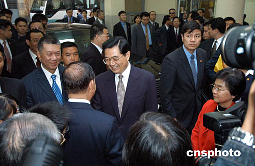 胡錦濤與夫人劉永清在澳門特首何厚鏵的陪同下參觀澳門勞工子弟學(xué)校,受到學(xué)校師生的熱烈歡迎。