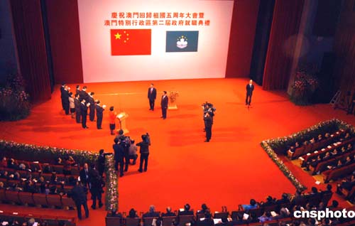 二十日,澳門隆重舉行慶祝澳門回歸祖國(guó)五周年大會(huì)暨澳門特別行政區(qū)第二屆政府就職典禮。作者:梁永強(qiáng)