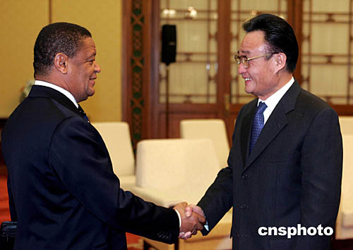 吳邦國表示,中國全國人大和埃塞俄比亞議會在各自國家政治生活中都發(fā)揮著重要作用,近年來,雙方保持了良好的交流與合作,中國全國人大愿與貴國議會共同努力,為中國和埃塞俄比亞關(guān)系的全面發(fā)展作出積極貢獻。