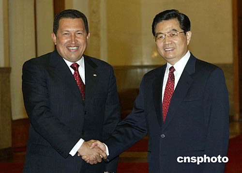 圖:胡錦濤會見委內(nèi)瑞拉總統(tǒng)查韋斯