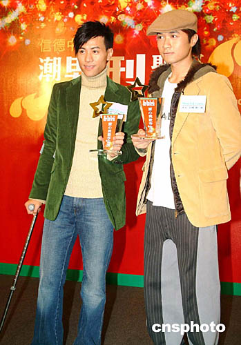 | 踏入年終,香港樂壇頒獎(jiǎng)禮一觸即發(fā),眾歌星紛紛外出宣傳拉票。12月23日,信德中心邀請(qǐng)被喻為樂壇『新四天天王』的其中兩位大熱型男古巨基、梁漢文出席慈善活動(dòng)。大會(huì)特別頒發(fā)『2004年度樂壇愛心型男金獎(jiǎng)』的獎(jiǎng)座感謝古巨基[右]、梁漢文的鼎力支持。作者:洪少葵