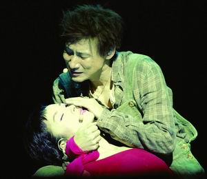 昨晚,張學(xué)友在首都體育館讓北京觀眾見識了他的音樂劇《雪狼湖》。該劇講述了一個凄美的愛情故事,雖然用通俗歌曲表現(xiàn),但情節(jié)、歌舞俱佳,比粵語版更顯精致,上座率在98%左右,許多觀眾都被感動得流下熱淚。