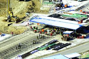 記者隨后在附近一幢可以俯瞰“鳥巢”全貌的高層建筑樓頂上看到,四五臺(tái)挖掘機(jī)正在“鳥巢”工地內(nèi)舞動(dòng)著大鏟,將一堆堆土方裝進(jìn)大貨車的車廂。幾十個(gè)工人正在焊接用來打樁的鋼筋框架,工地內(nèi)一排排鉆機(jī)已經(jīng)就位,施工單位寫有“青年突擊隊(duì)”字樣的隊(duì)旗迎風(fēng)招展。據(jù)了解,目前“鳥巢”工地已有五六百工人進(jìn)駐。