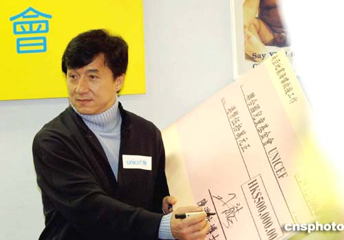 香港多個(gè)民間救援機(jī)構(gòu)陸續(xù)發(fā)起籌款活動(dòng),為南亞海嘯災(zāi)難捐款,12月29日,國際影星成龍?jiān)谙愀壅J(rèn)捐五十萬元予聯(lián)合國兒童基金會(huì)。作者:洪少葵